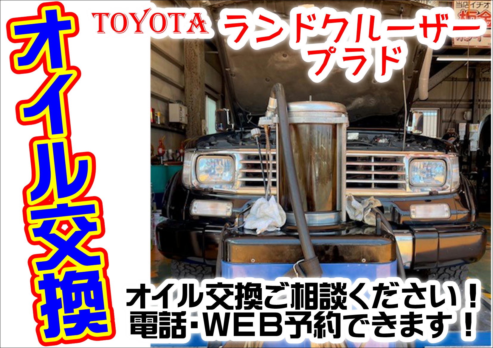 当店HPを見て!【WEB日記を見て初めてのご来店】トヨタ ランドクルーザー プラド《エンジンオイル交換》※お出かけ後の、お車の点検はされてますか?只今、無料点検実施中です!