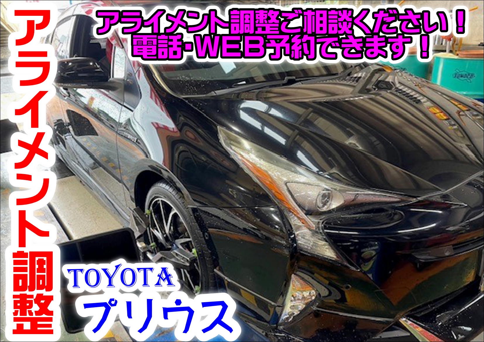 【WEBを見て初めてのご来店】アライメント調整 トヨタ プリウス ※タイヤの右前の外側が特に減る!縁石に乗り上げてしまって、それからが早く減っていたので、今後はタイヤを長持ちさせたい為!