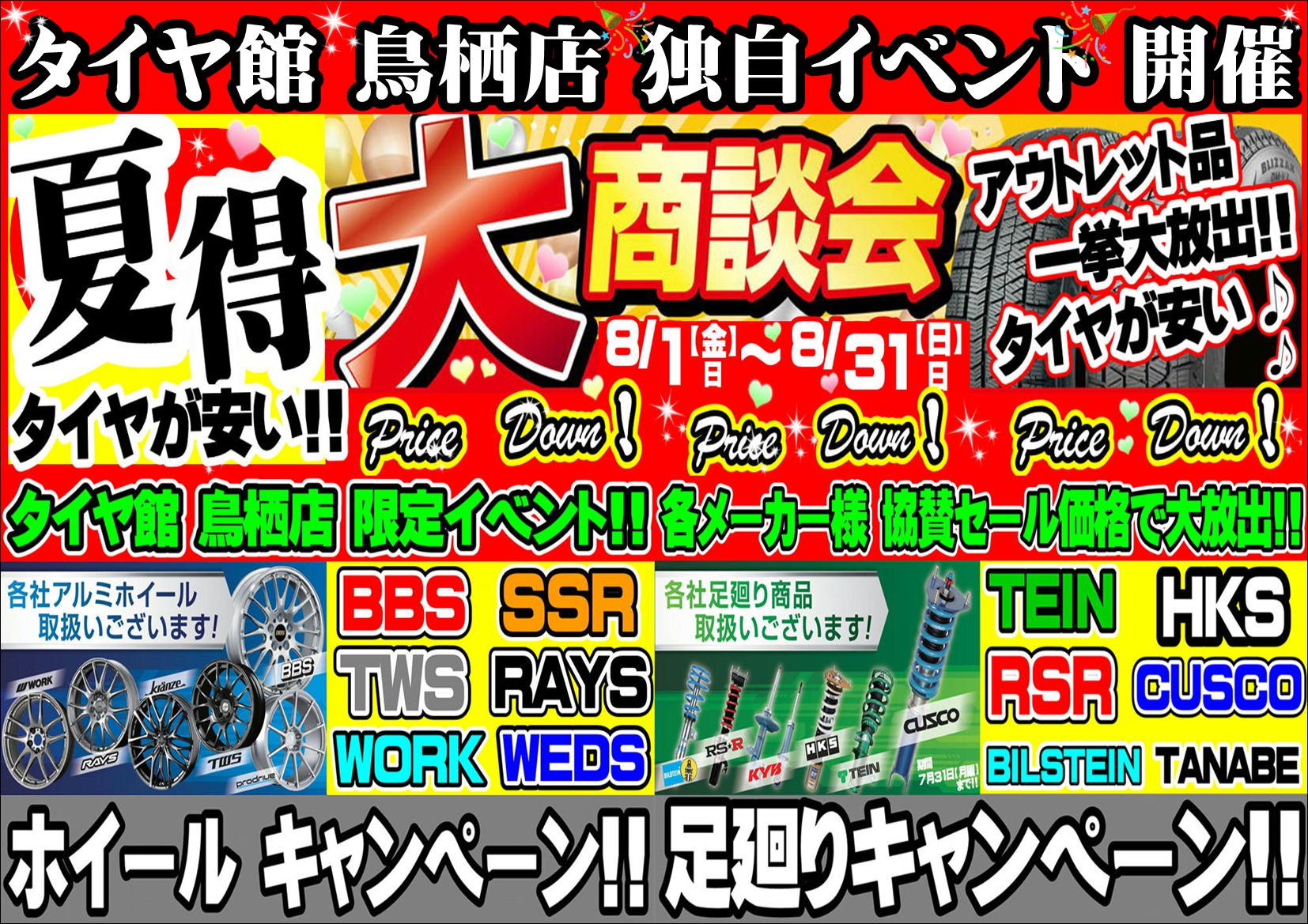 ★⭐︎『"夏得"大商談会 タイヤが安い!』+『レグノタイヤ 旧品アウトレット特価で大放出!』+☆『"有名メーカー様"とのコラボ売り出し♪ アルミホイール&車高調&ダウンサス キャンペーン 』開催してます!⭐︎★