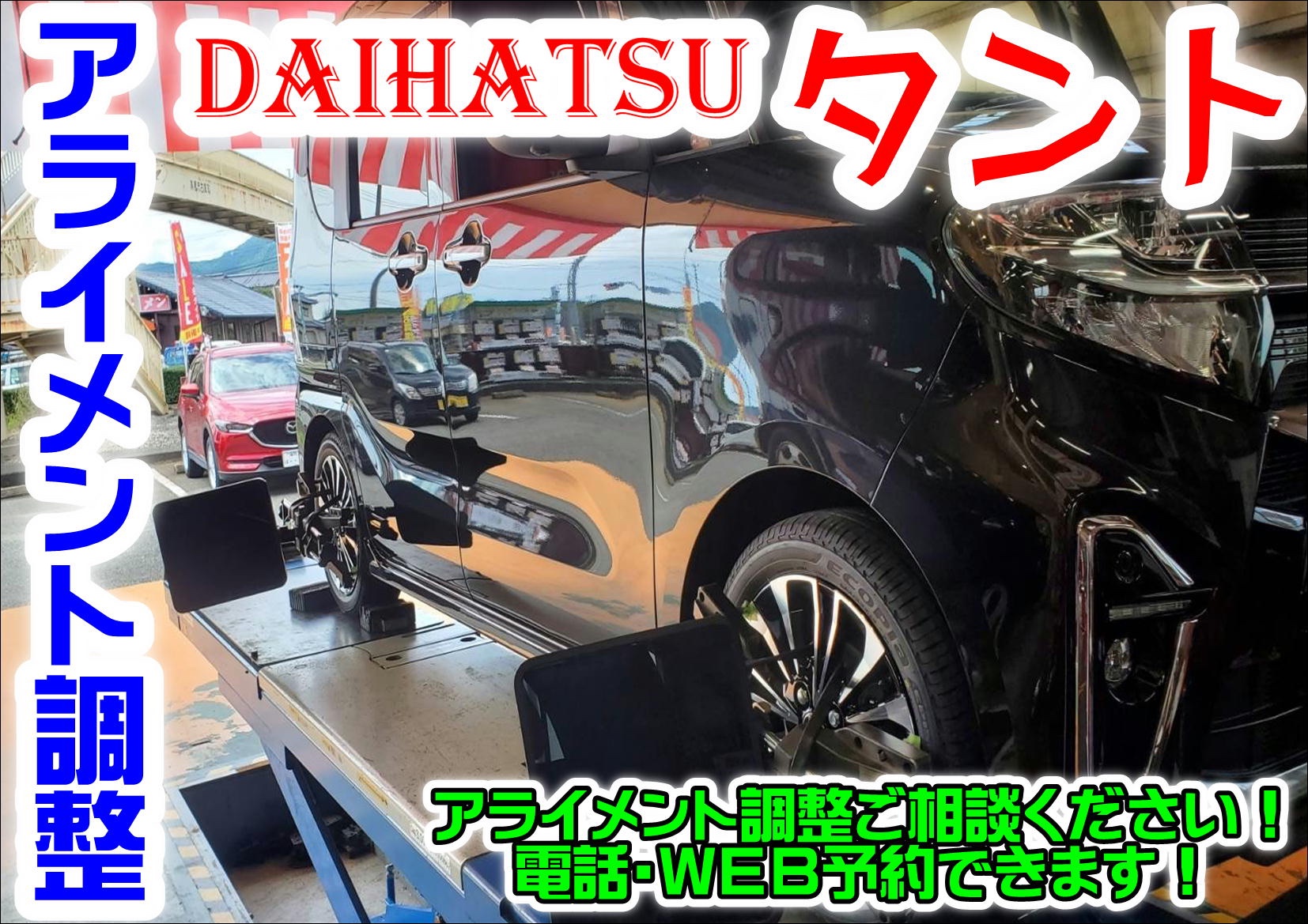 【WEBを見て初めてのご来店】アライメント調整 ダイハツ タント ※1年前にフロントタイヤの右側を縁石に乗り上げてしまい、それからタイヤが早く減っていたので今後はタイヤを長持ちさせたい為!