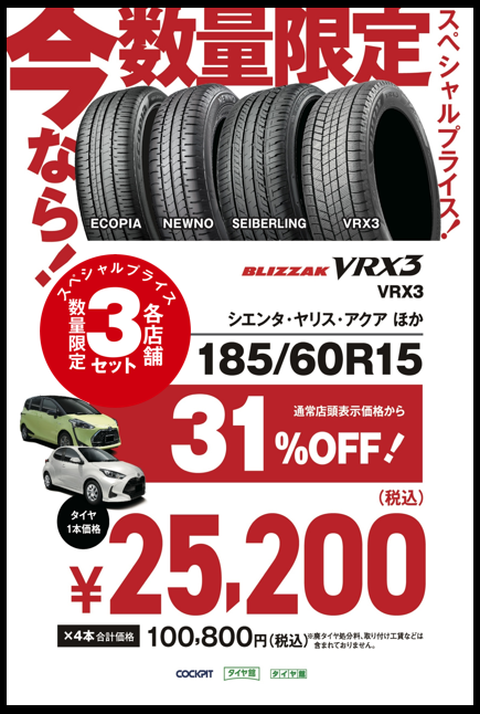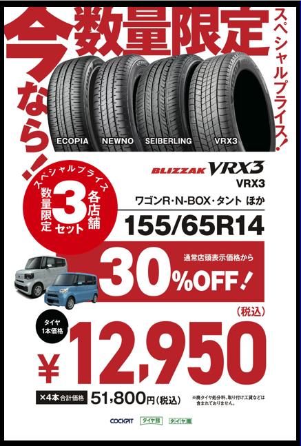 タイヤ館 鳥栖店 期間限定セール開催!!『"タイヤスペシャルプライスデー"』開催!!※期間限定! サイズ限定!! 数量限定!!!