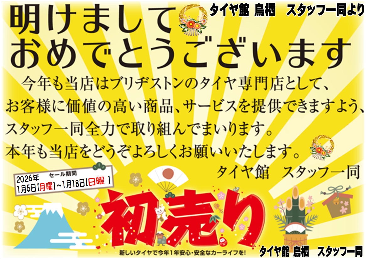 タイヤ館 鳥栖店 スタッフ一同より皆様へ【2026年 年始のご挨拶】