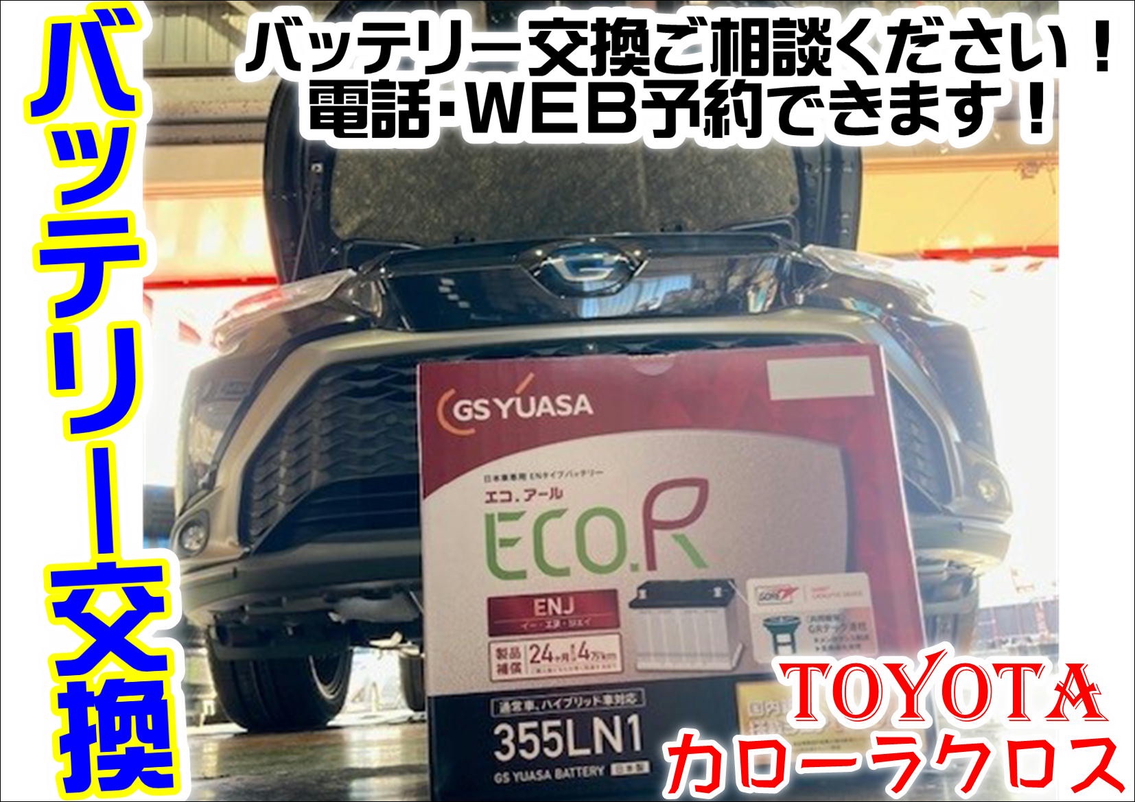 当店HPを見て!【WEBを見て初めてのご来店】トヨタ カローラ クロス メンテナンスメニュー 《バッテリー交換》 お出かけ後の、お車の点検はされてますか?只今、無料点検実施中です!
