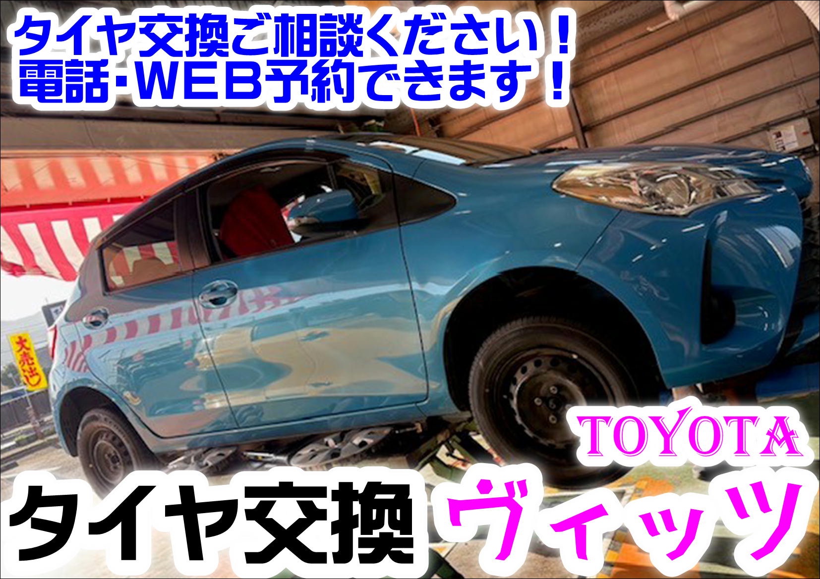 Google 口コミを見て!【初めてのご来店】4年経った、タイヤ交換 トヨタ ヴィッツ《フィネッサ》