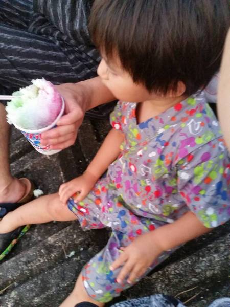 屋台で食べ物飲み物をかって河川敷にスタンバイして見学しました。