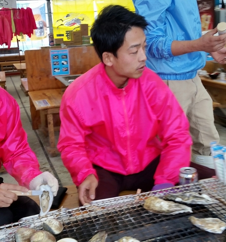 牡蠣小屋初体験者ばかりだったので、おぼつかない手つきで食べました(⌒‐⌒)