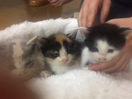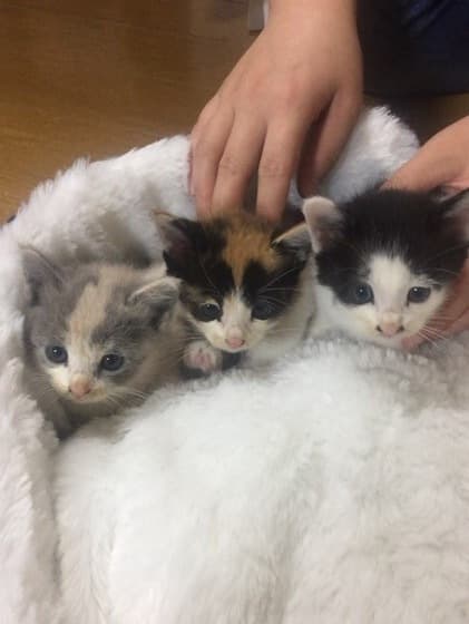 中を覗くと小さな子猫ちゃんが3匹身を寄せ合ってました。