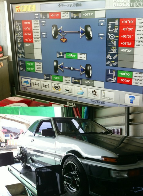 ハチロク(スプリンタートレノ)がアライメントのため入庫しました。
