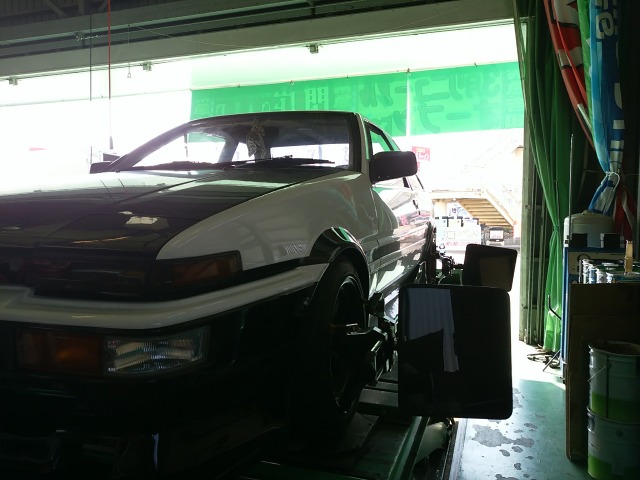 アライメントの調整で入庫したハチロク(スプリンタートレノ)