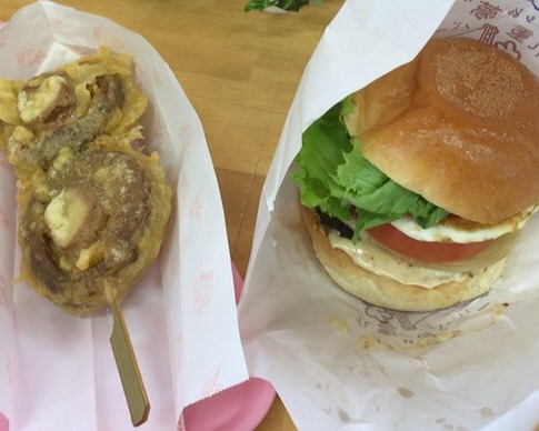 前に九重の大吊橋に行った時に食べたハンバーガーとシイタケの天ぷらを載せ忘れてました!