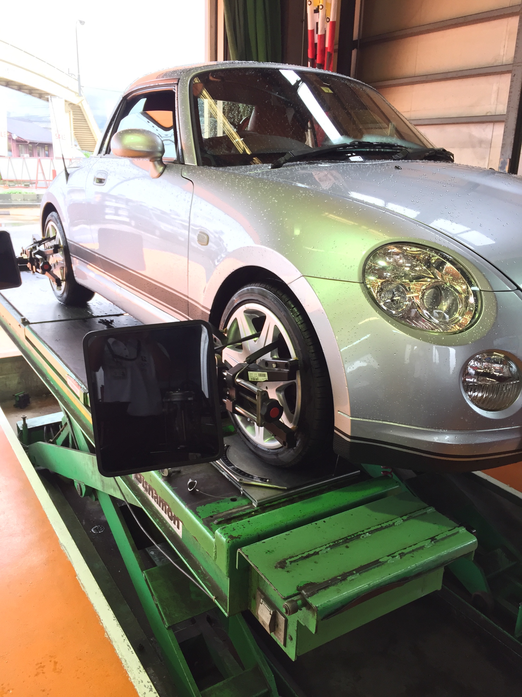 右前が入り込んでいたのでハンドルを真っ直ぐにしていたら左に流れている状態でしたので改善してあげました。