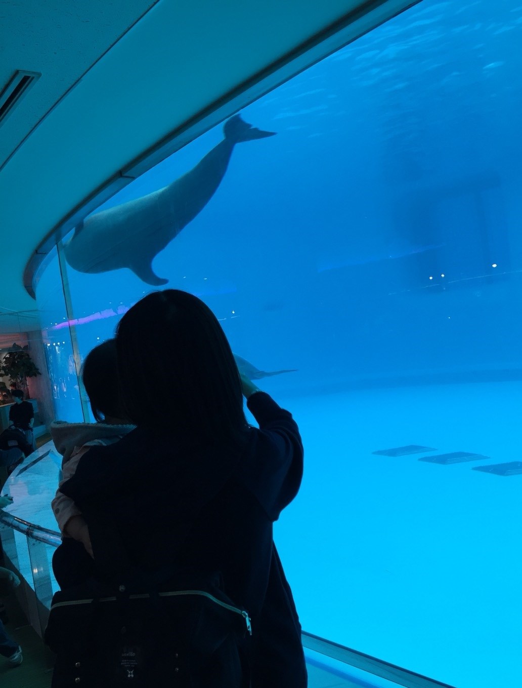 水族館が初めての娘もイルカや魚たちを見て