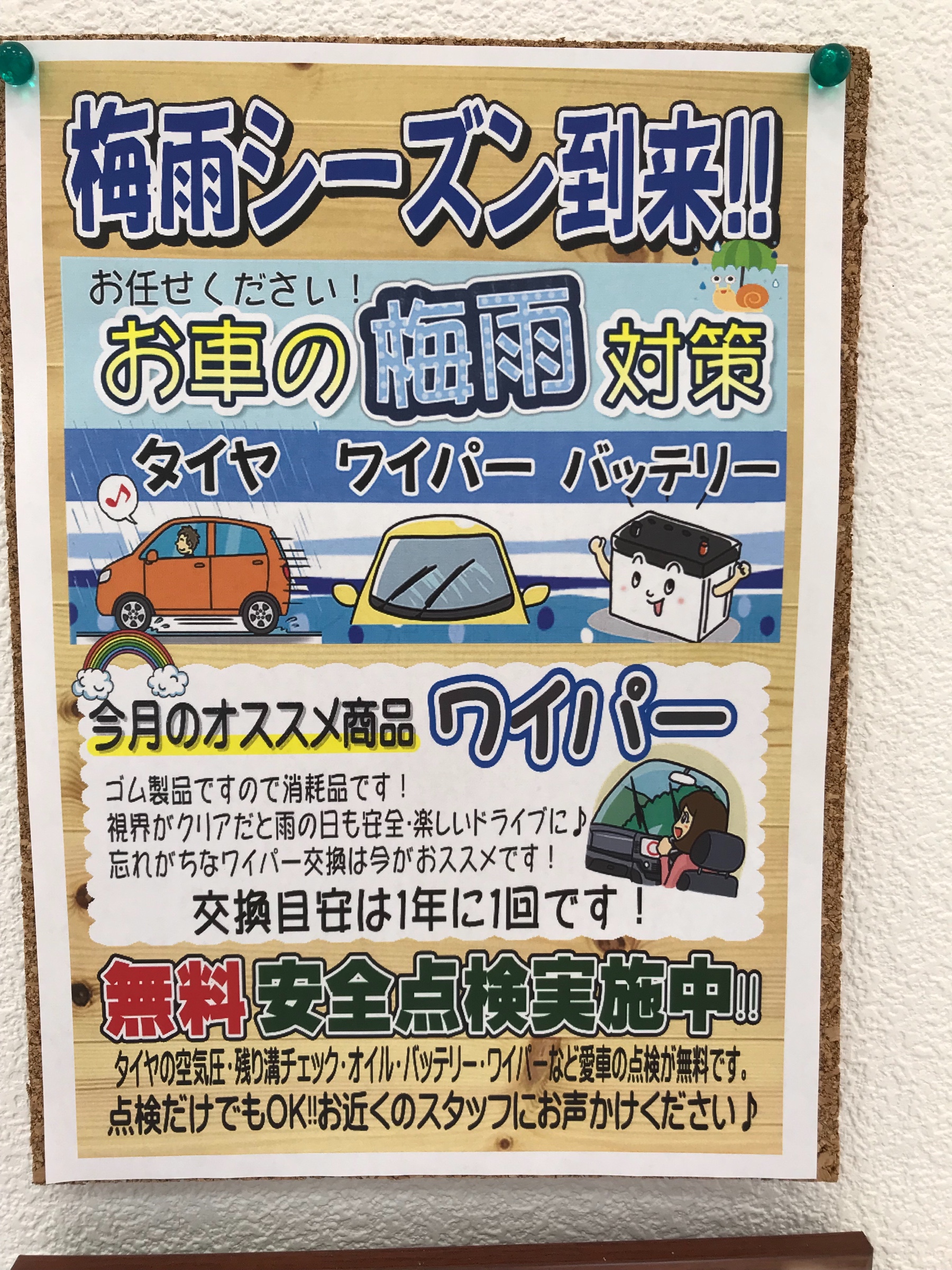 タイヤの点検もエンジンオイルの点検もワイパーの点検もバッテリーの点検もタイヤ館では無料でやっております!