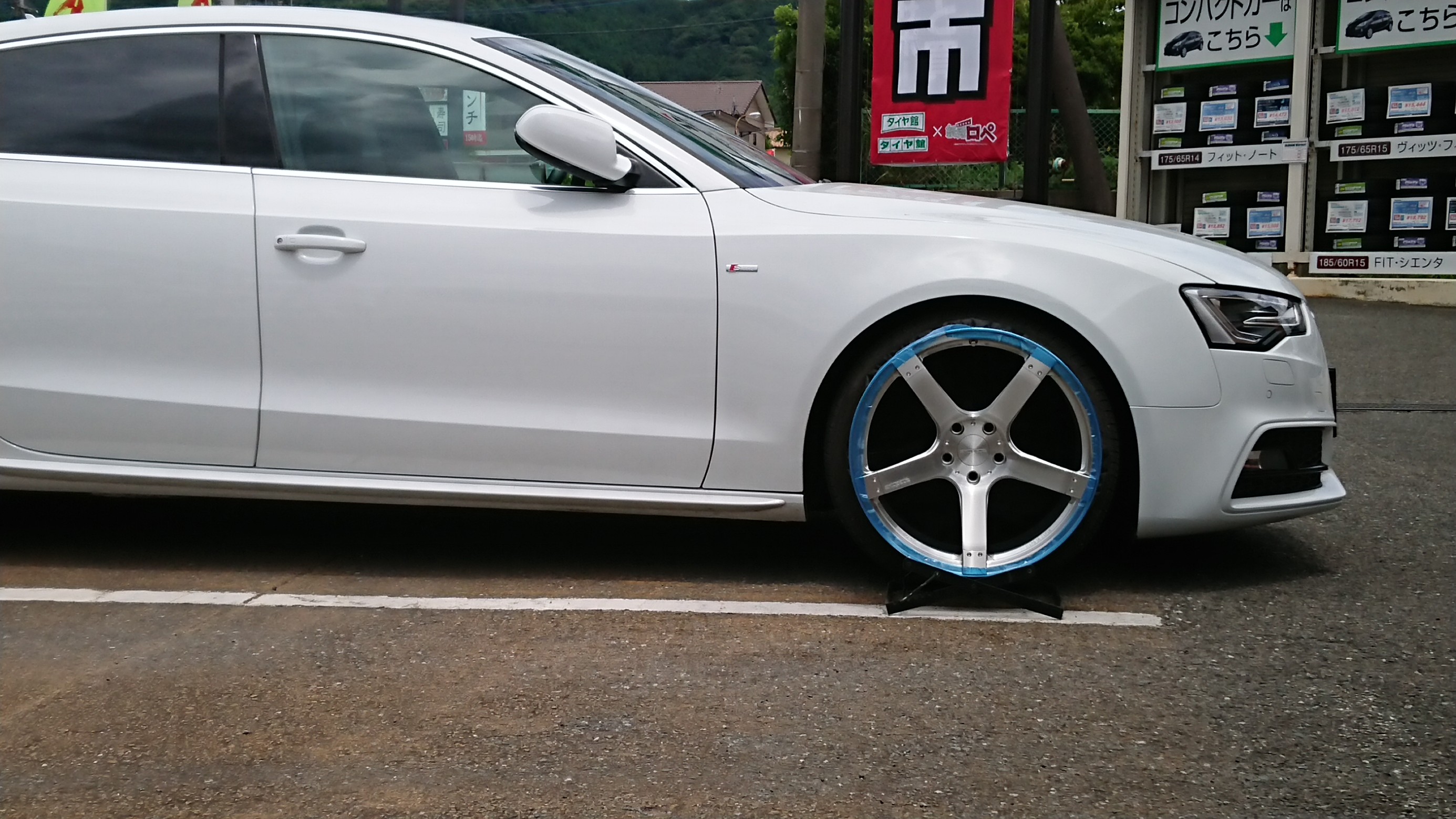 いや~、やはりアルミホイールはテンション上がりますね!こんな風にお車の横に置いてみたら、イメージしやすいし~(^-^)