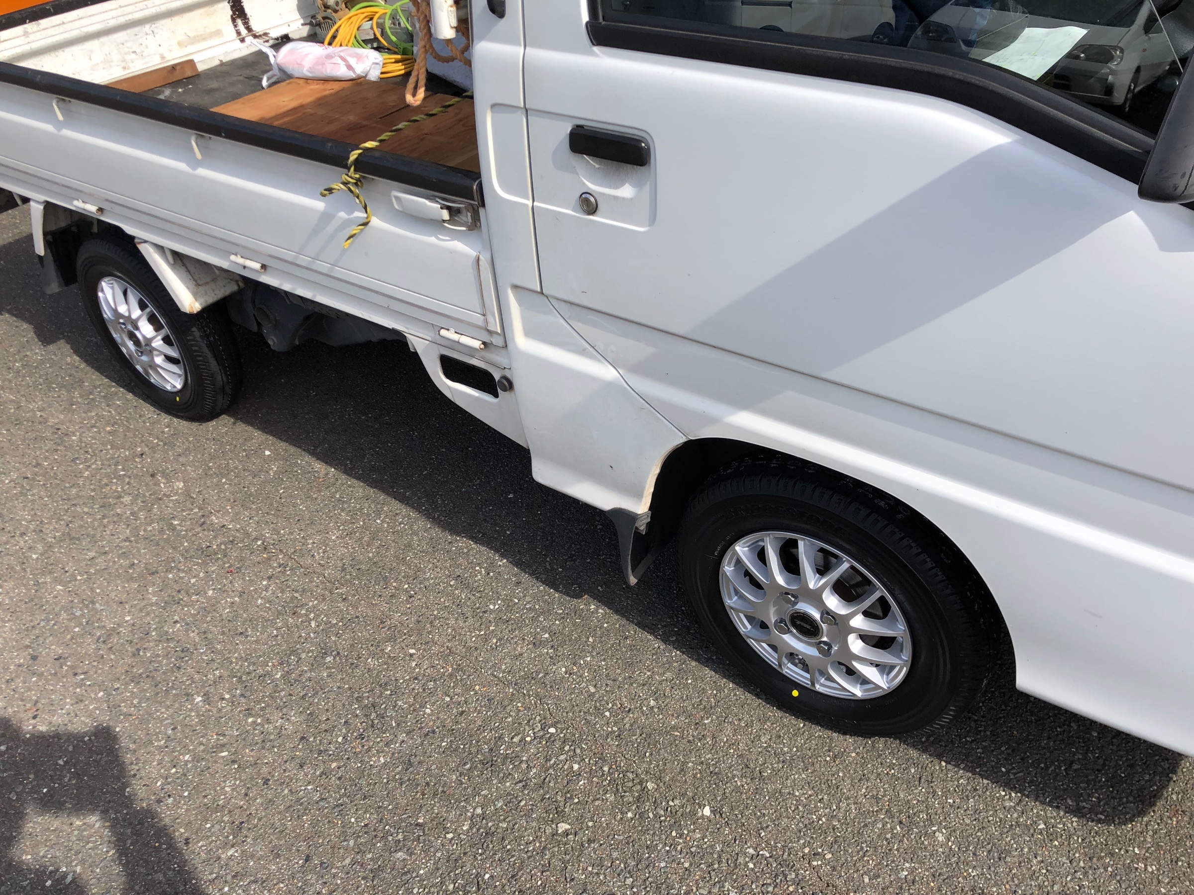 先日タイヤと一緒にホイールを交換したお客様の軽トラック^ ^