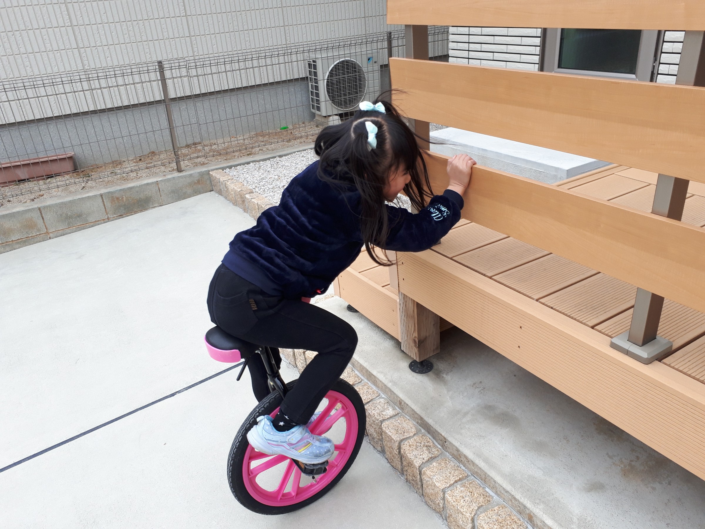 先日のお休みに、子供と一輪車の練習をしました(*^^*)!