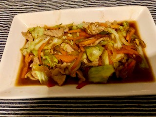 シンプルに豚肉だけで作ろうと思ったんですが、お野菜がたくさんあったので一緒に炒めました♪