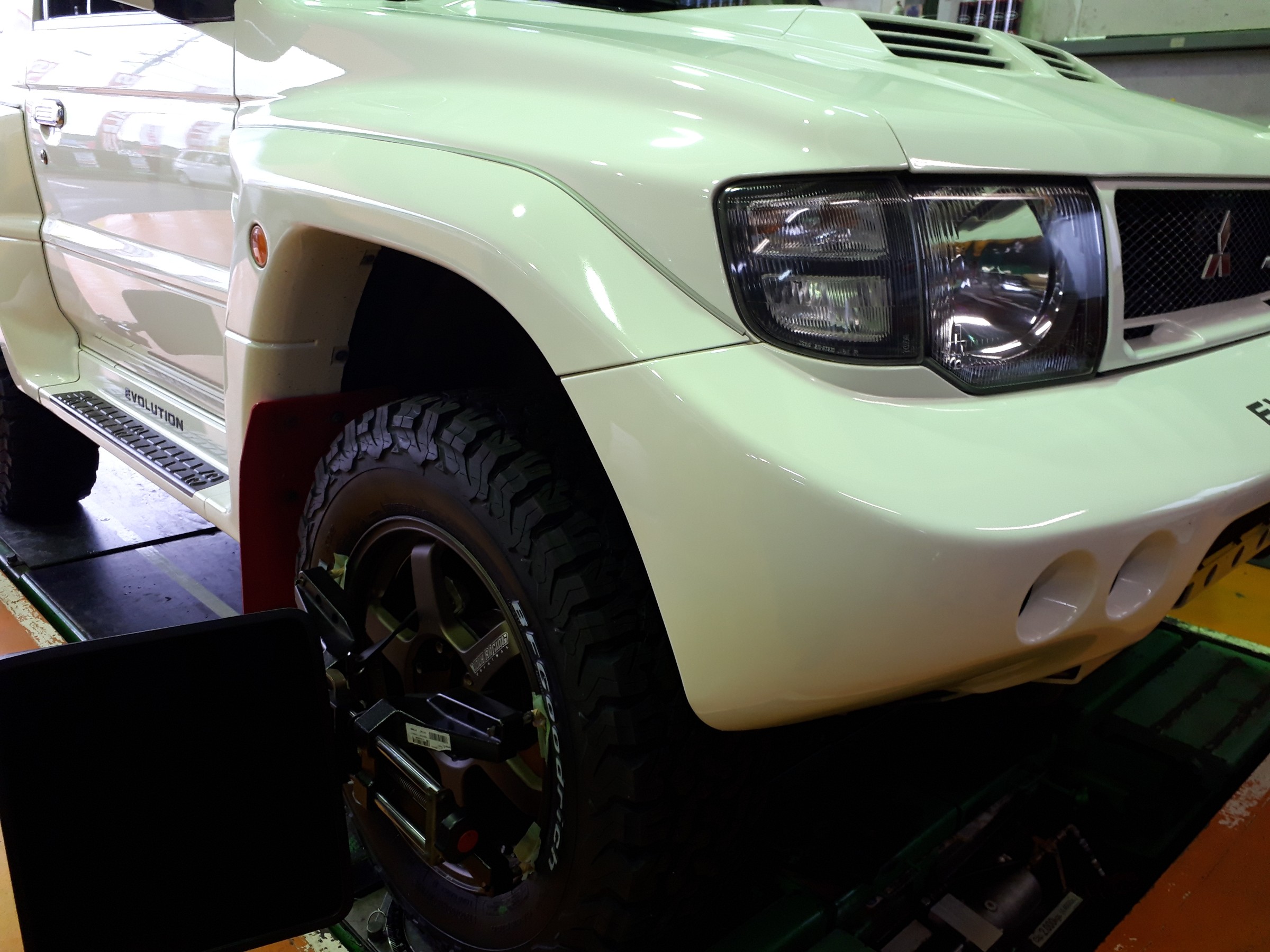 今回はミツビシ パジェロエボのアライメント調整を取りました!
