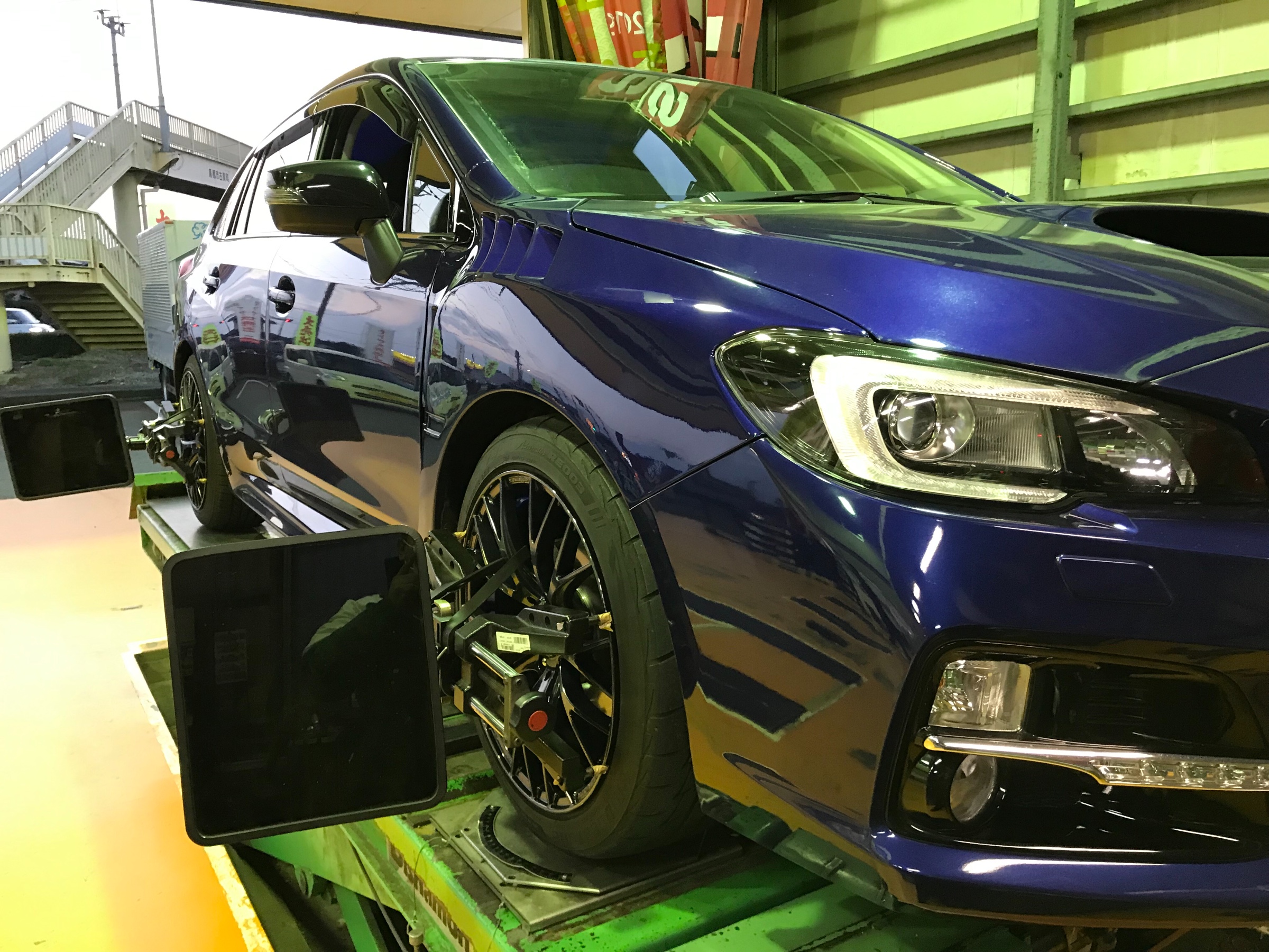 脱着を終えて走行してみるとハンドルを真っ直ぐにした際に、右に流れる症状が出たのでアライメントを取り直しました(^∇^)