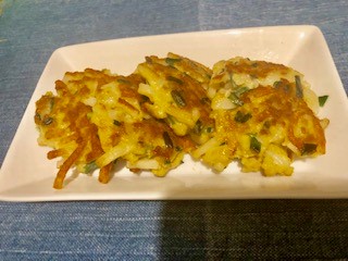 普通の餃子のたねにうどんを細かく切ったものを混ぜて焼いたものです。