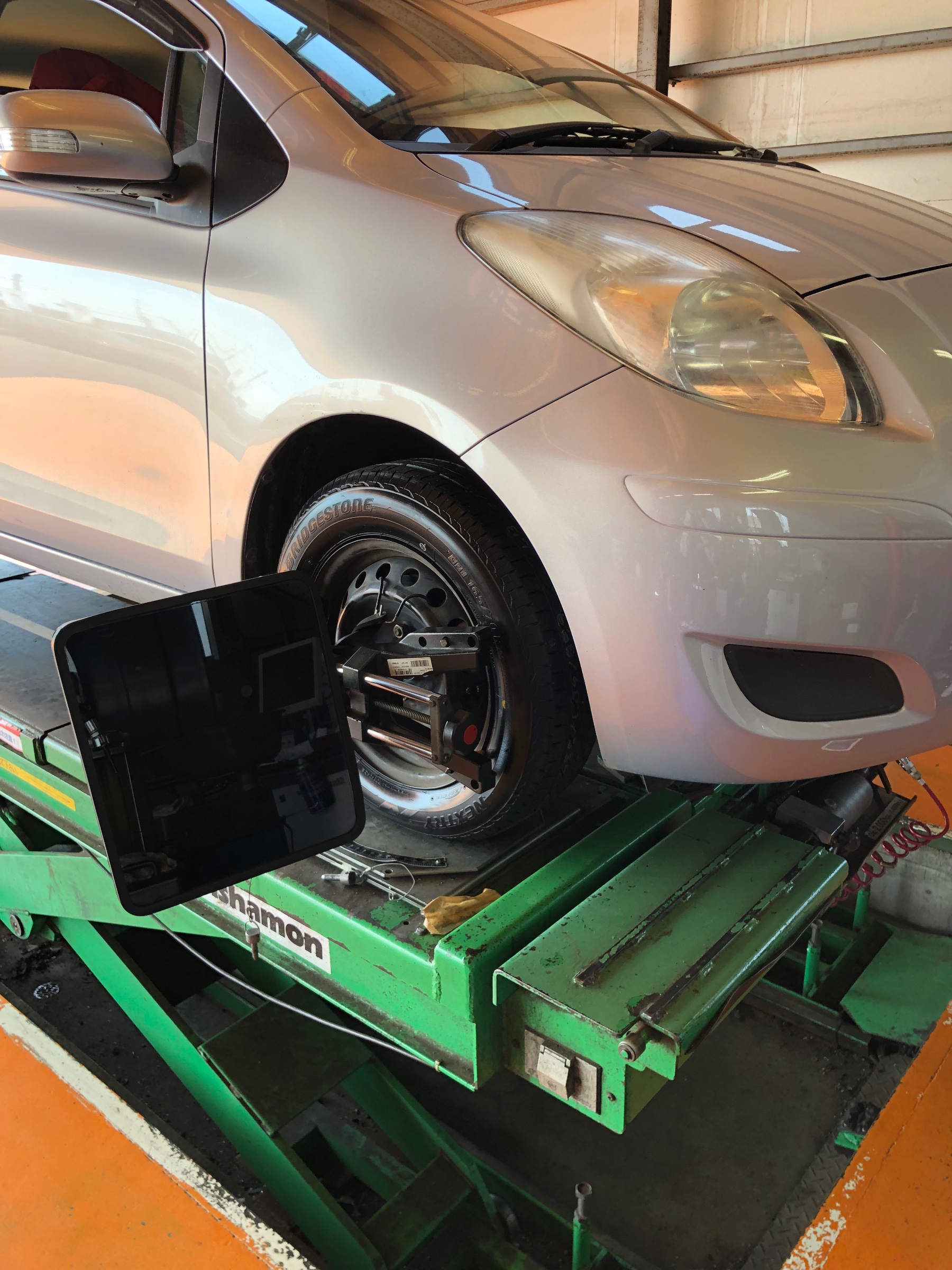 今回はヴィッツのアライメント作業風景をパシャリ!!