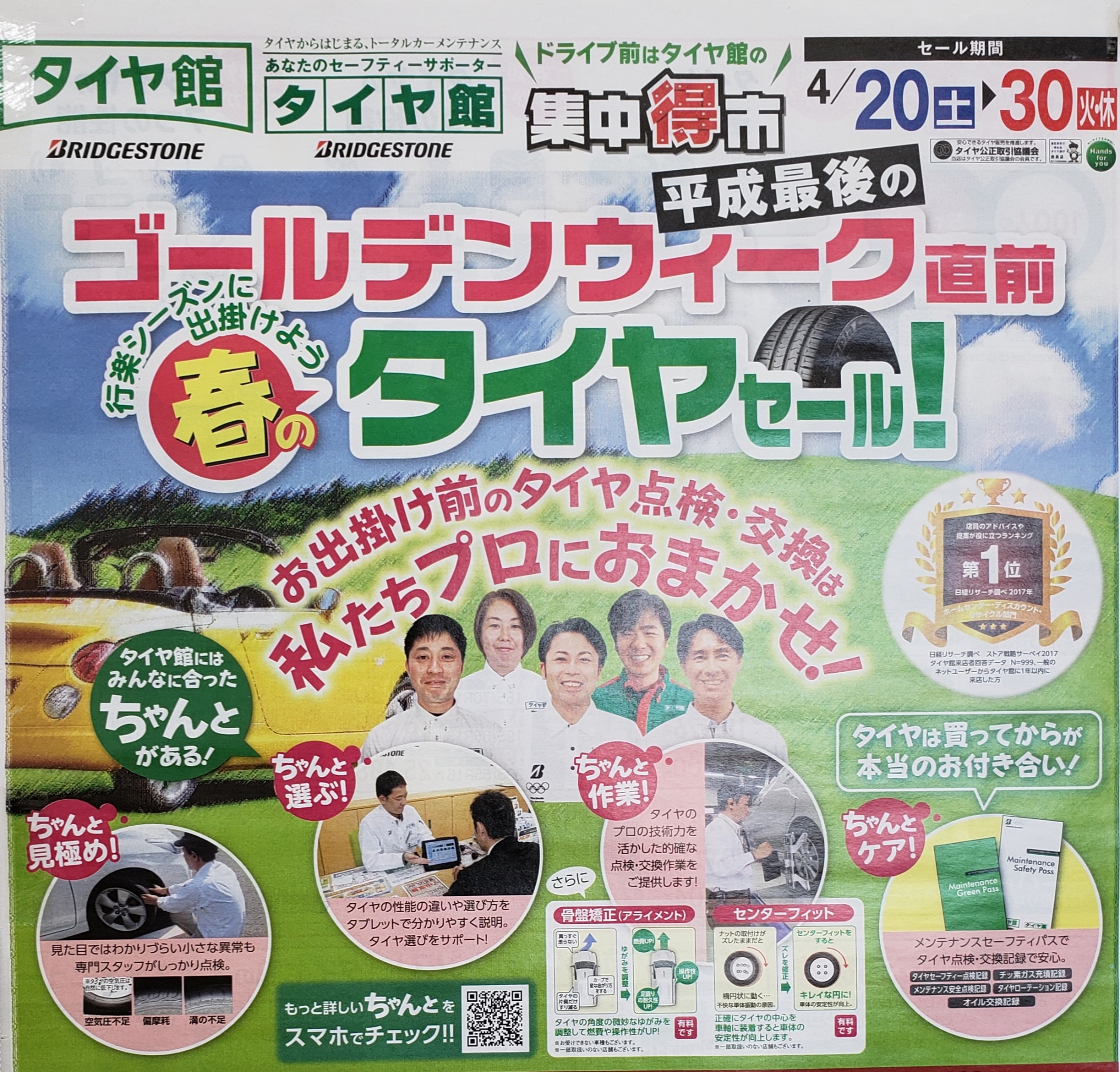 ちなみにタイヤ館では4月20日〜4月30日まで集中得市開催してます♪