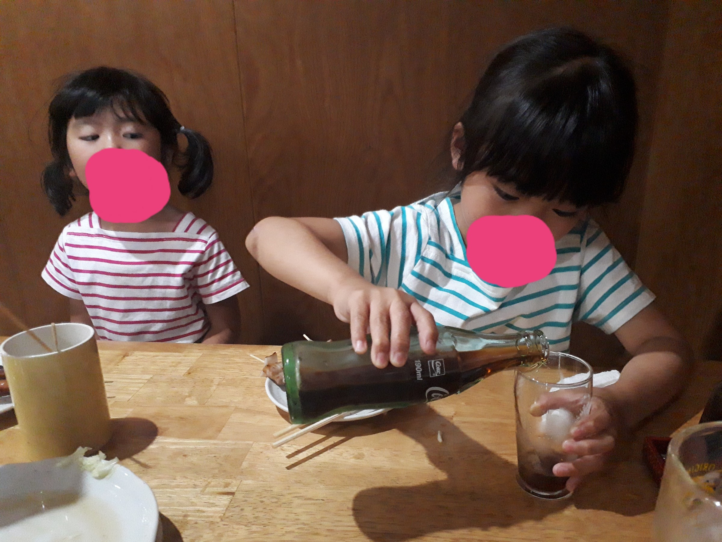ビールのつぎかたをそれっぽく子供がマネをしてる所をパシャり(*^^*)♪♪♪笑