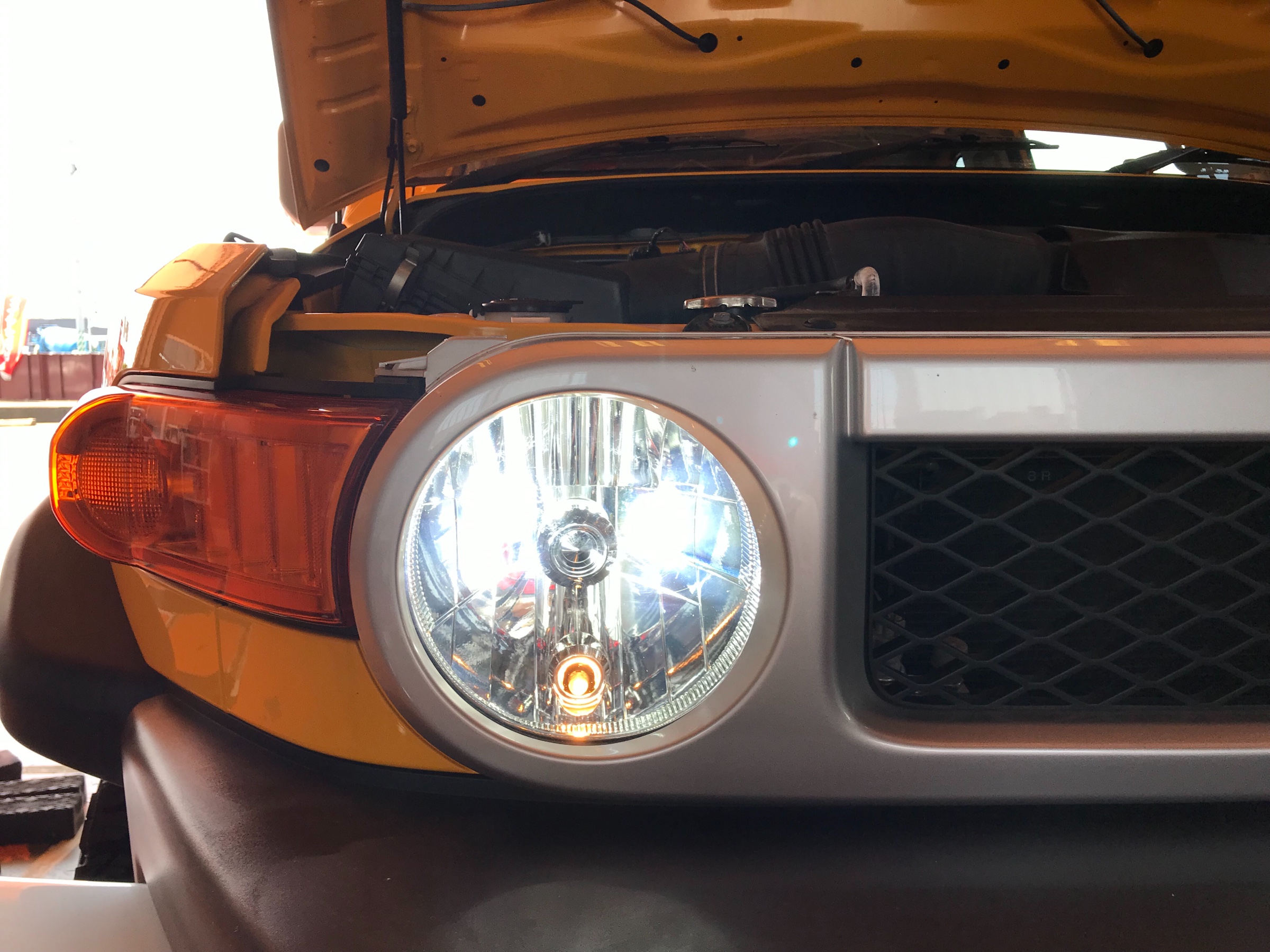 先日ホイール交換をしたFJクルーザーのヘッドライトを純正からLEDに交換しました!