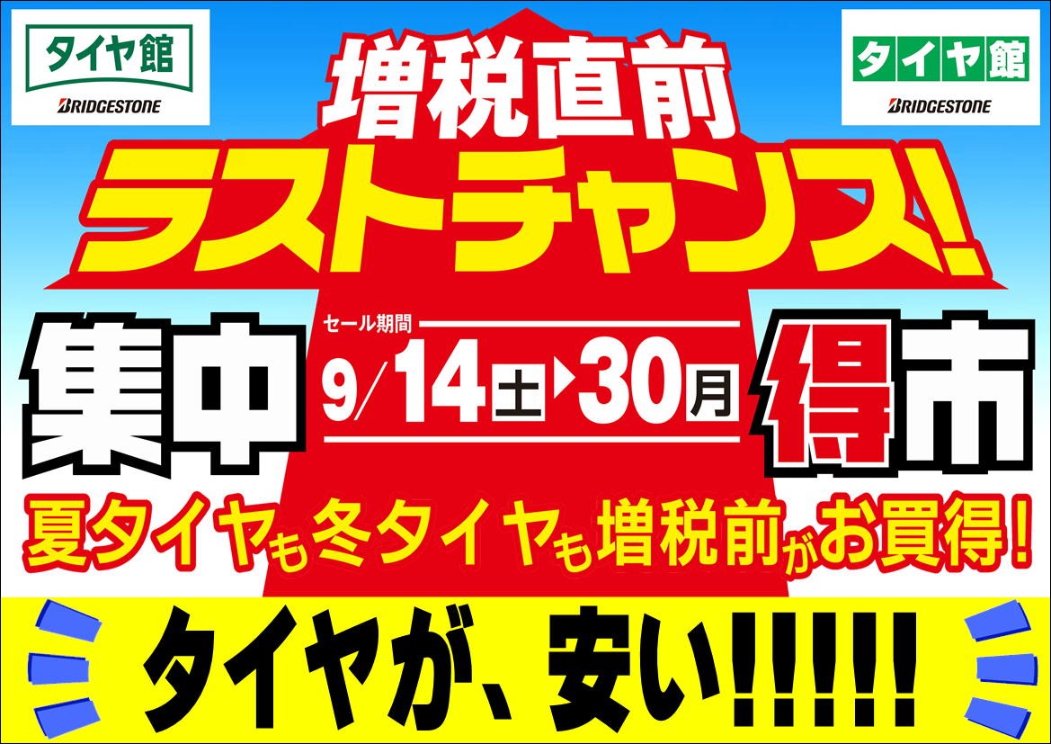 『増税直前、ラストチャンス集中得市!』開催しちゃいまーす(^^♪