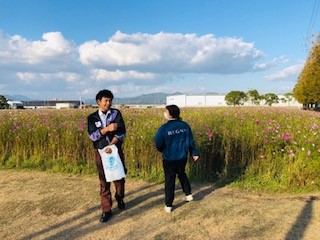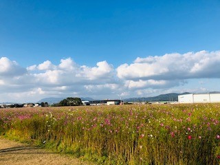 工場の近くにコスモス畑があったので写真を撮りに行きました!
