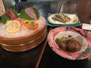 刺し盛・きびなごの磯部揚げ・豚骨炊です!