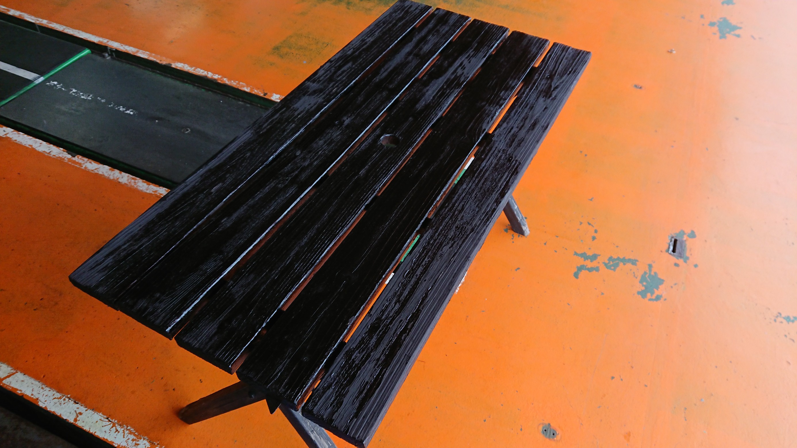 お客様用の外用の机を塗り直したのであーる❗