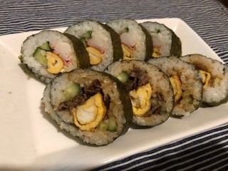 私は一人で黙々とお昼から恵方巻を作っていました。笑