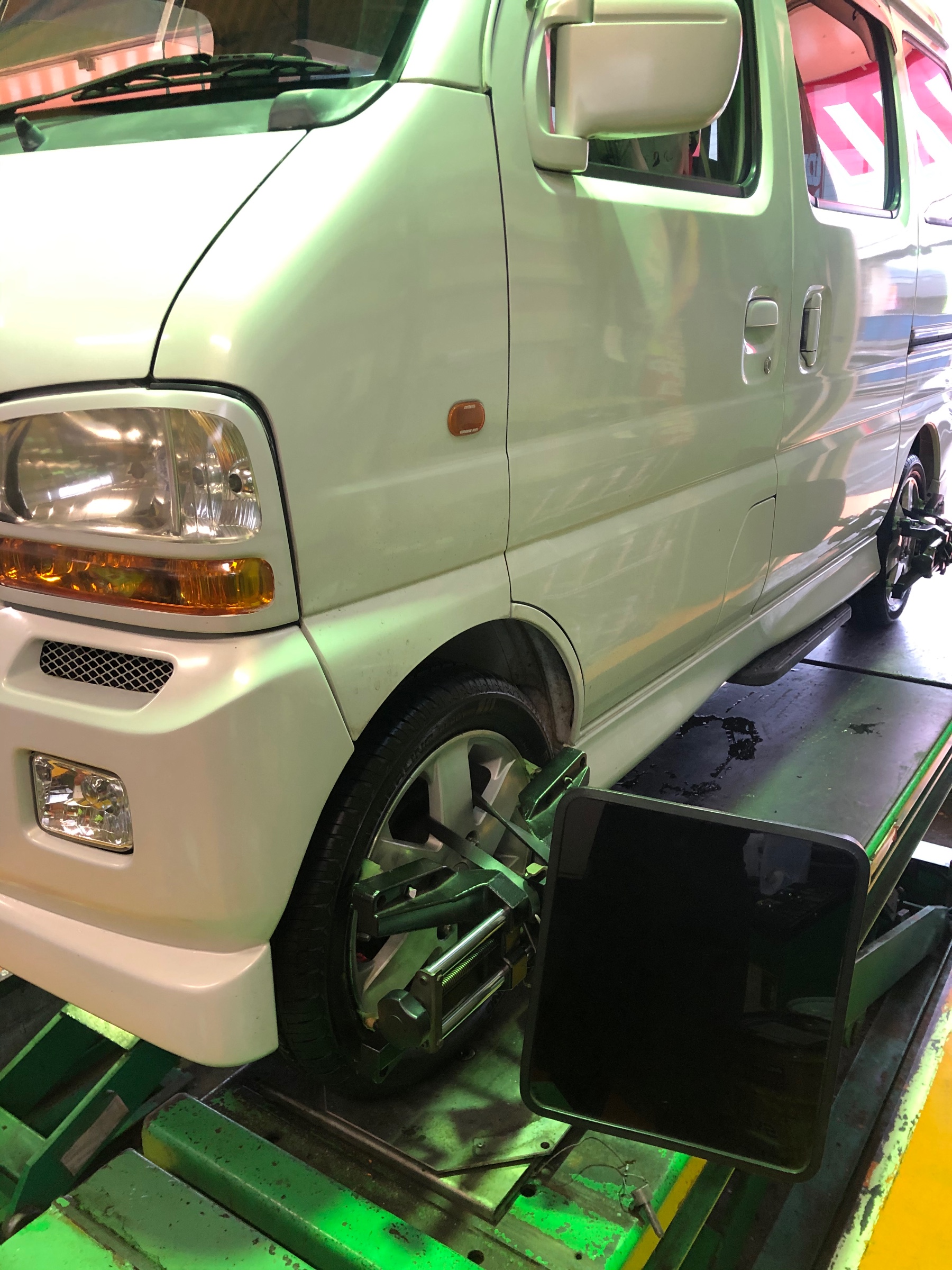 今回はエブリイのアライメント調整風景をパシャり^ ^