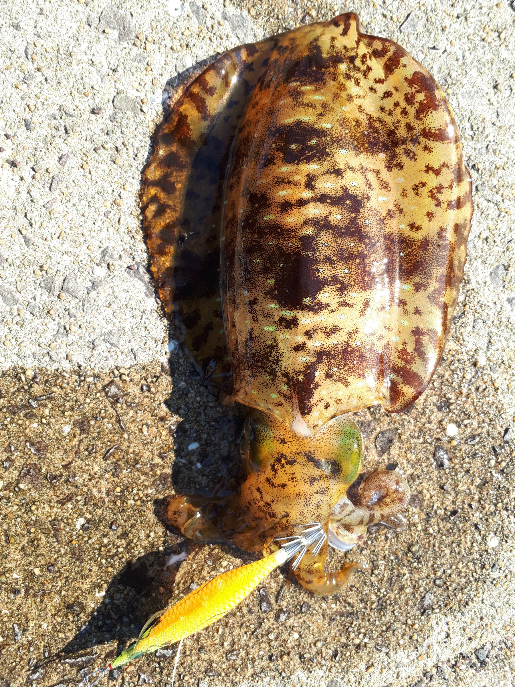 今月はまだエギングに行けていないですが、先月行ってた時に釣れたイカの写真です‼
