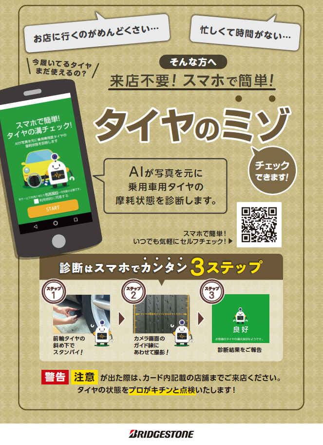 スマホで写真を撮るだけでタイヤの摩耗状態をAIが診断します!!
