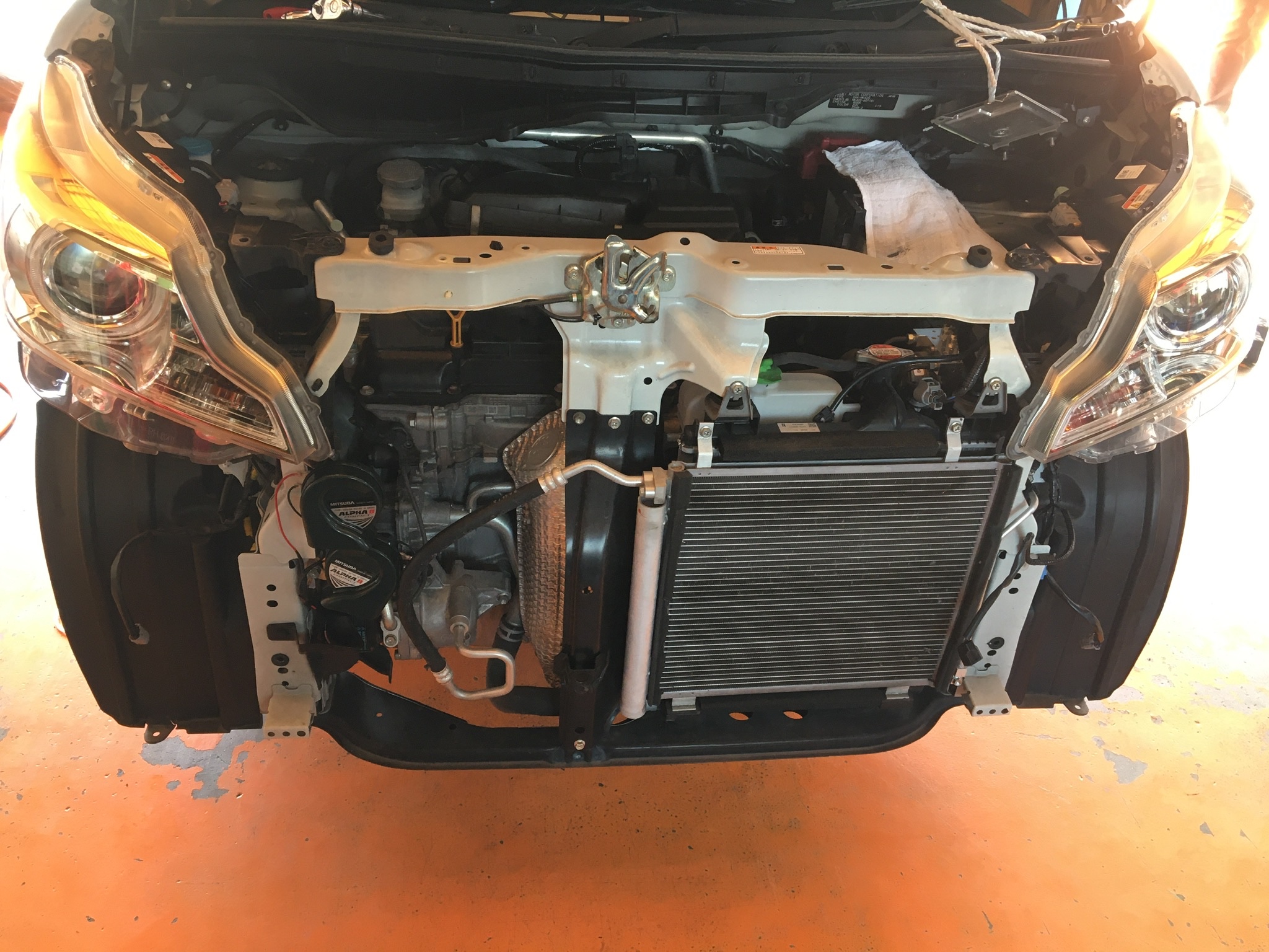 フロントバンパーを外し作業に入りました!!
