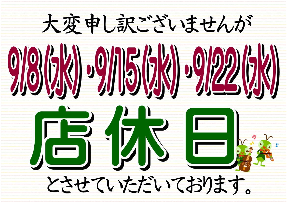 みさまこんにちは。タイヤ館鳥栖店です! 9月の店休日のお知らせです。 9月の店休日は 8日(水)・15日(水)・22日(水) になります。 ご迷惑おかけいたしますが何卒ご理解ご協力の程よろしくお願いいたします。