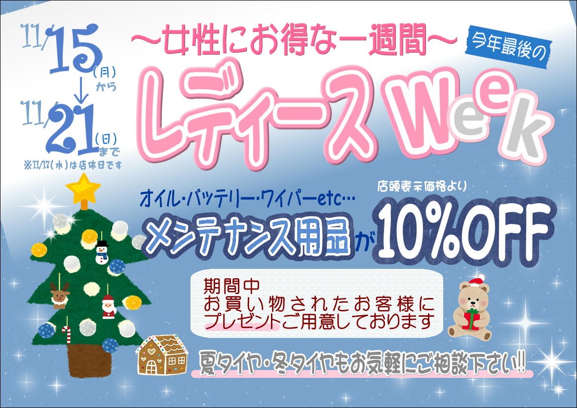 レディースWeek開催します♪11/15(月)~11/21(日)