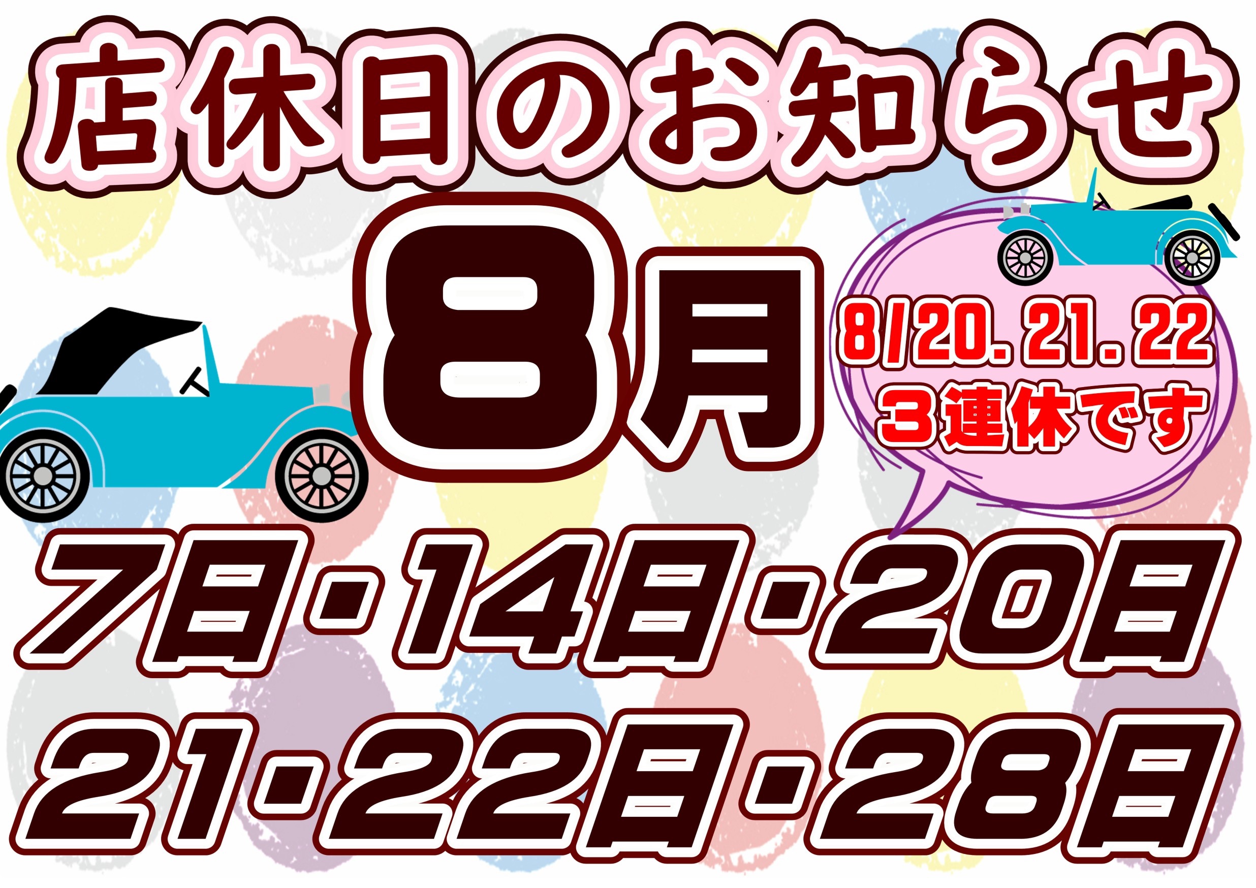 8月20日(火)・21日(水)・22日(木)の3日間臨時休業のお知らせ!