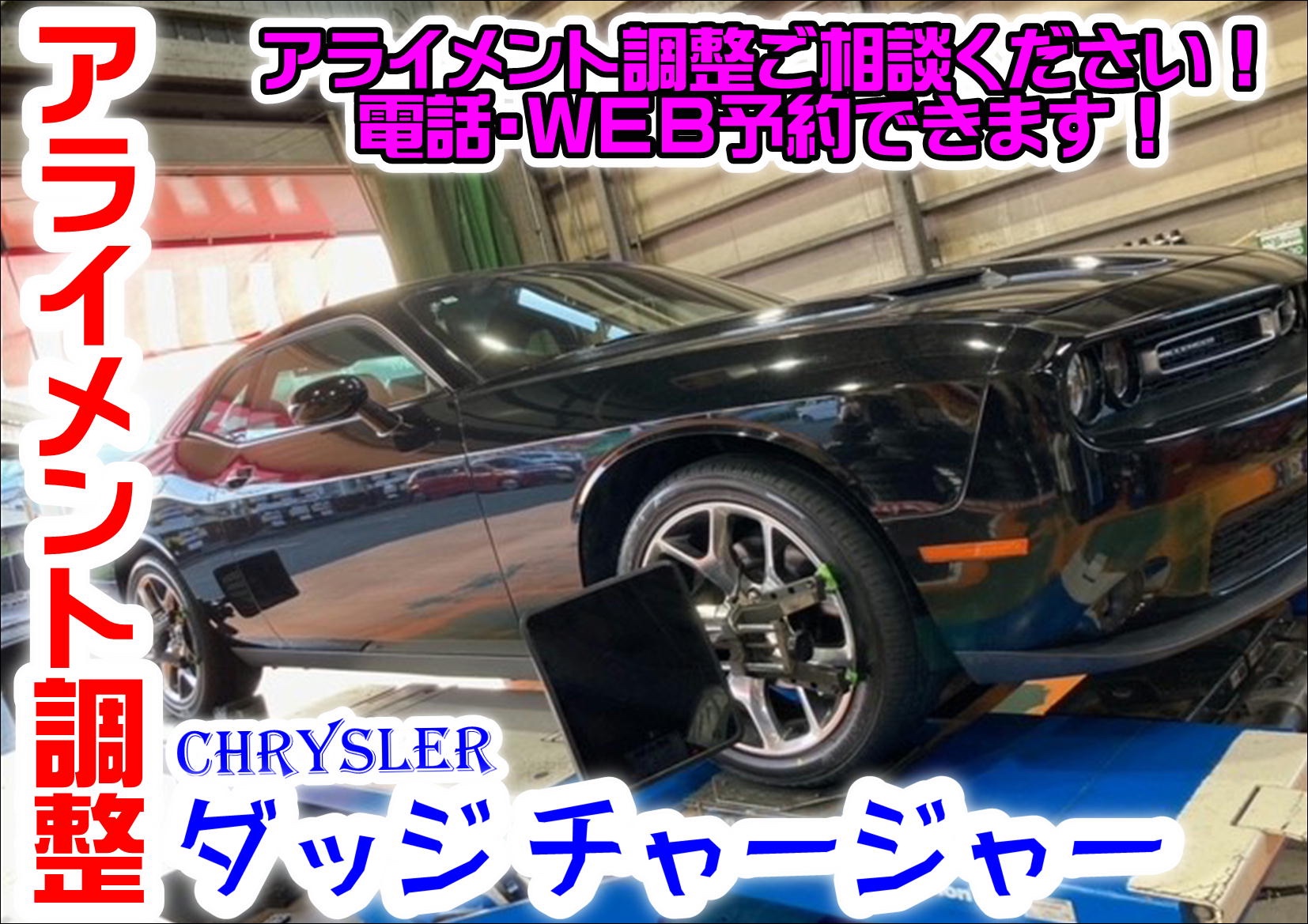 【WEBを見て初めてのご来店】アライメント調整 クライスラー ダッジ チャージャー ※タイヤ交換前、フロント内側が急激に早く減っていたので、今後はタイヤを長持ちさせたい為!