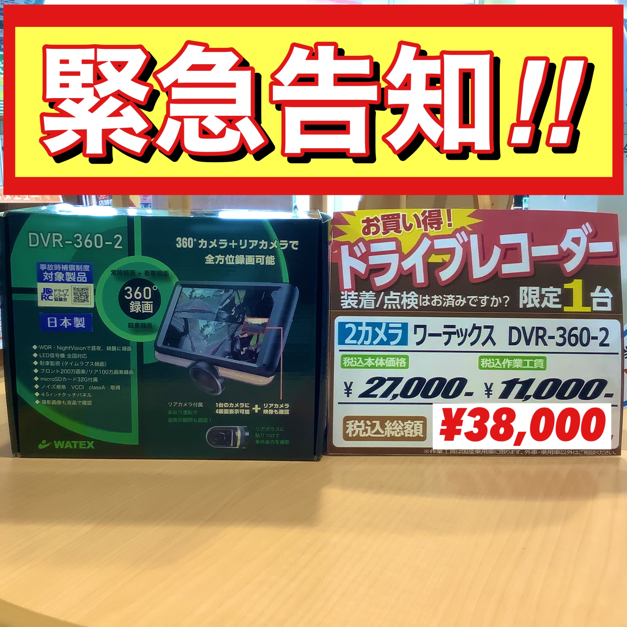 緊急告知!! 【ドラレコ お値下げ品 でました】