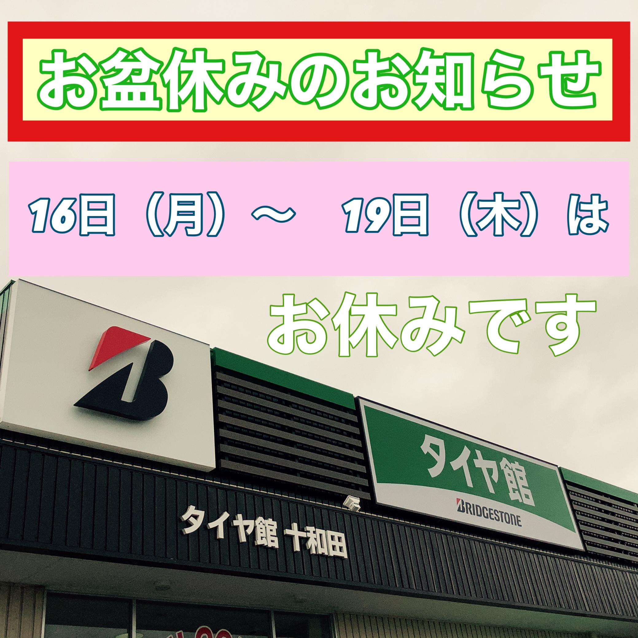 タイヤ館十和田 は お盆休み となっています。
