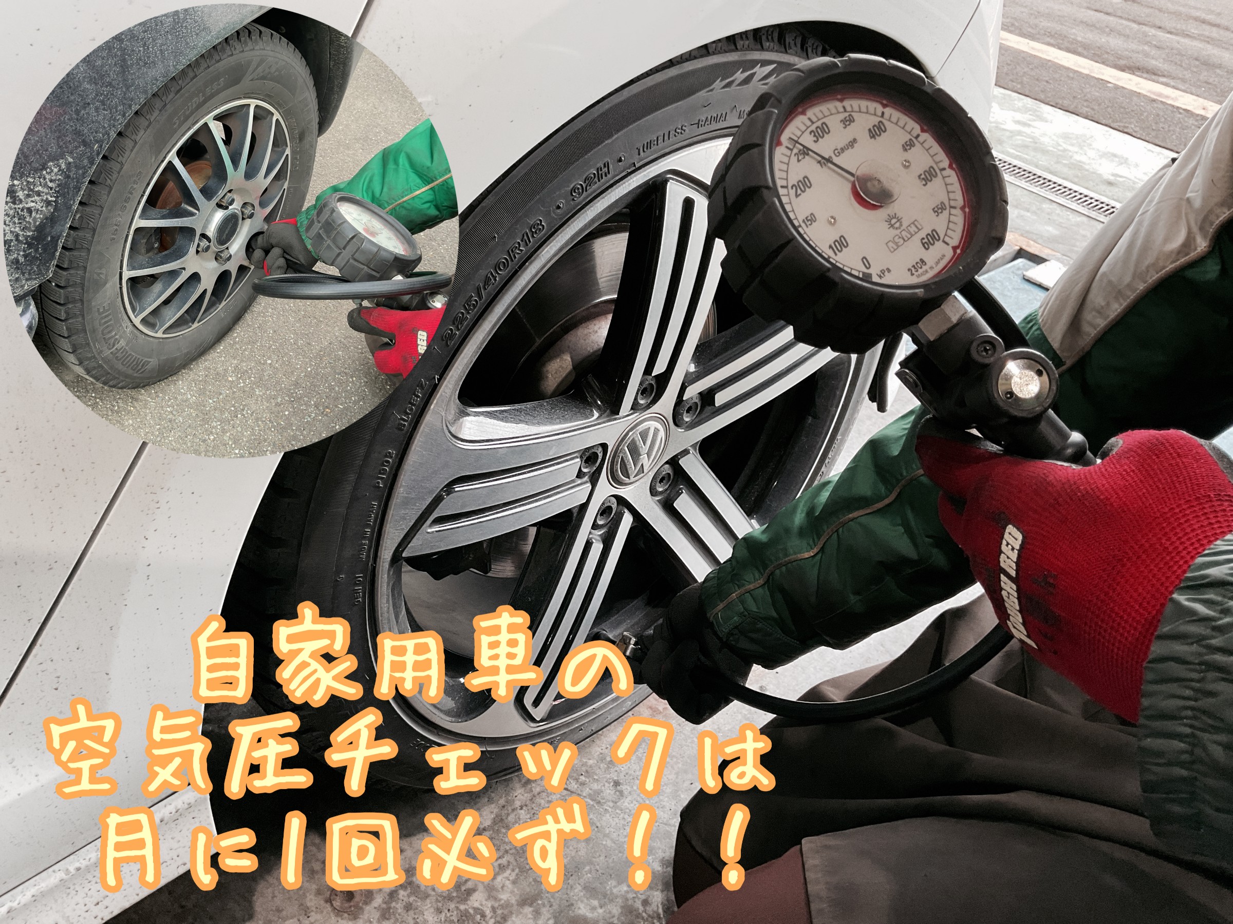 当店スタッフも自家用車の空気圧チェックを