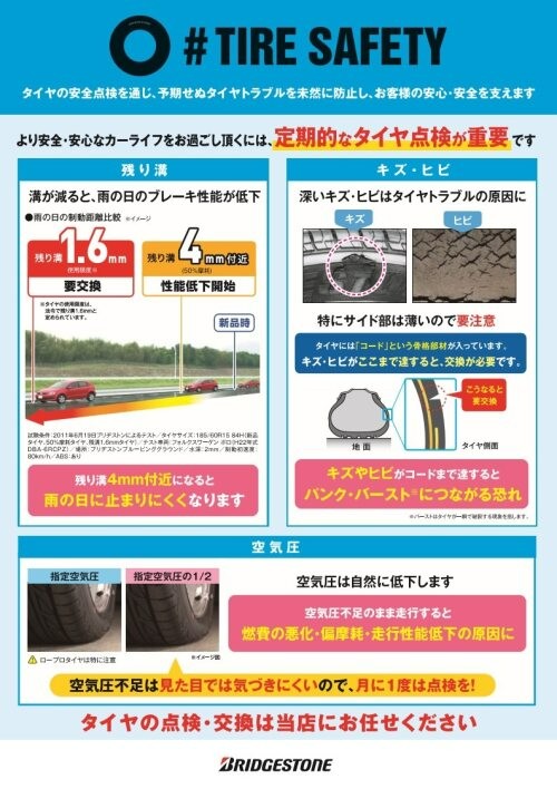 タイヤは、命を乗せています。ぜひ日頃の点検によってトラブルを未然に防ぎ、