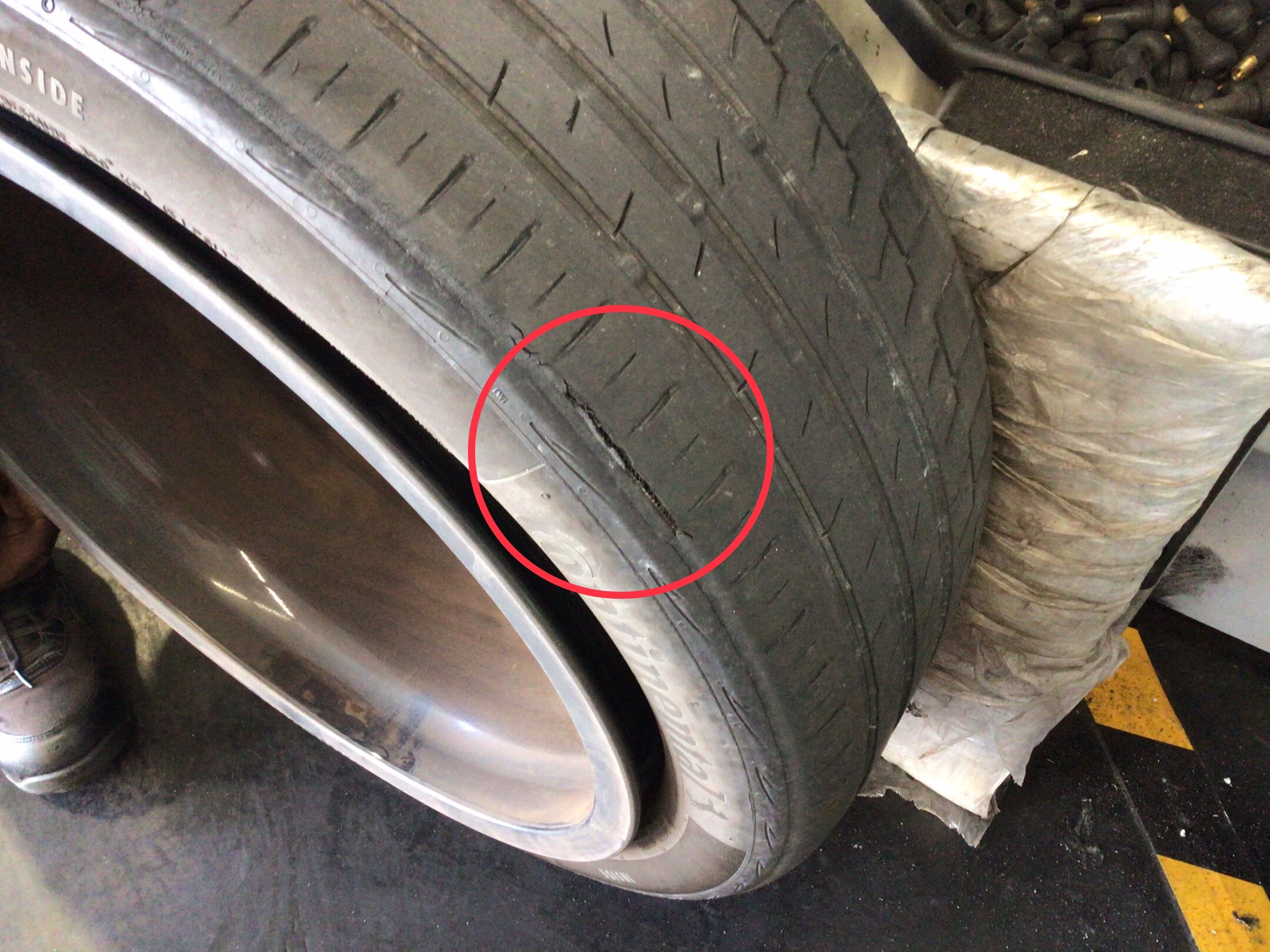 タイヤの内側の肩の部分に亀裂が…!