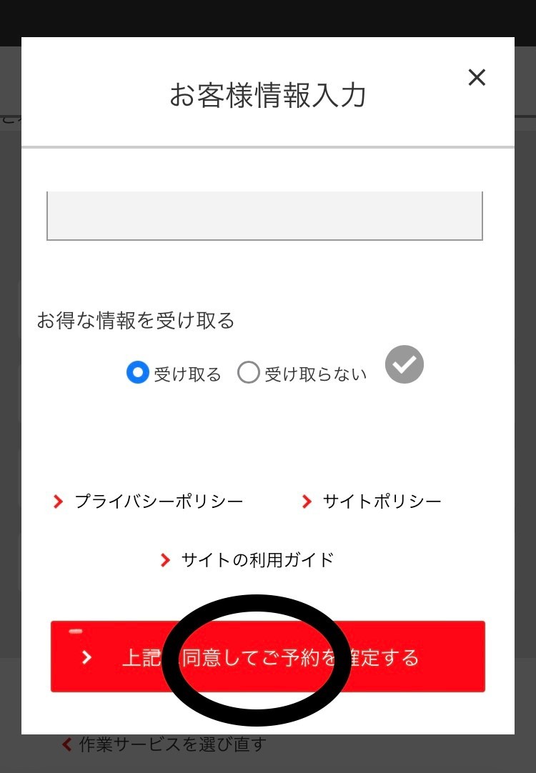 「上記に同意してご予約を確定する」をタップします。