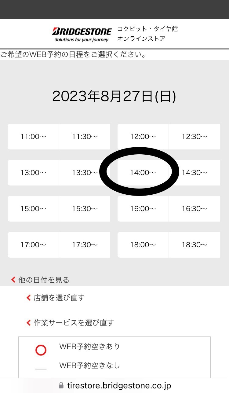 作業時間を選択します。今回は、14:00を選択します。