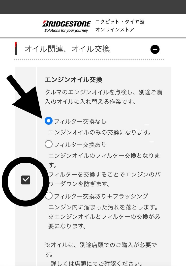 オイル交換のサービスメニューからオイルフィルター(エレメント)