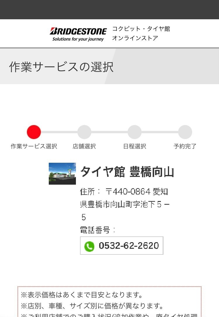 ご利用予定の店舗のホームページに切り替わります。